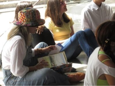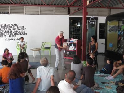 11: 30 am Hora del Cuento II: «Conociendo-Leyendo Los Mejores Libros para Niños y Jóvenes»: Entre los promotores y amigos, Los Comelibros y más, nos distribuimos en pequeños grupos para compartir con los niños y sus familias y con los jóvenes asistentes la aventura de conocer de manera cálida y cercana algunos de Los Mejores Libros para Niños y Jóvenes (por razones de tiempo, y por la audiencia que asistió nos dedicamos especialmente a los infantiles) . Leímos en voz alta, compartimos pareceres…siempre…Tendiendo Puentes…